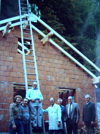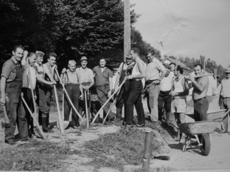 Deshalb trafen sich am 24.9.1966 zwanzig Personen um die „Interessengemeinschaft Eisbahnbau“ zu gründen. Ein Grundstück hatte man auch schon ins Auge gefaßt, den alte Schulsportplatz, eine zum Steinbrunner Bach hin abfallende Sumpfwiese, aber mitten im Ort. In vielen Arbeitsstunden wurde Kies aufgeschüttet und mit Sand eine Feinplanie geschaffen, ca. 55 Meter lang und 6 Meter breit war die erste Bahn.Wenn die Winter kalt genug waren wurde aufgespritzt und fleißig geschossen.